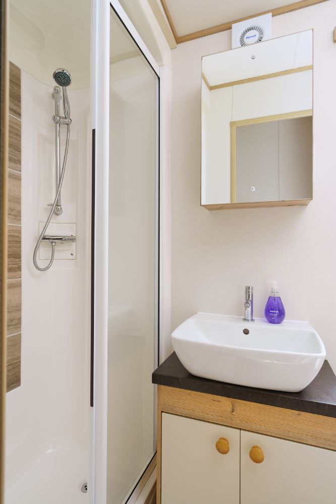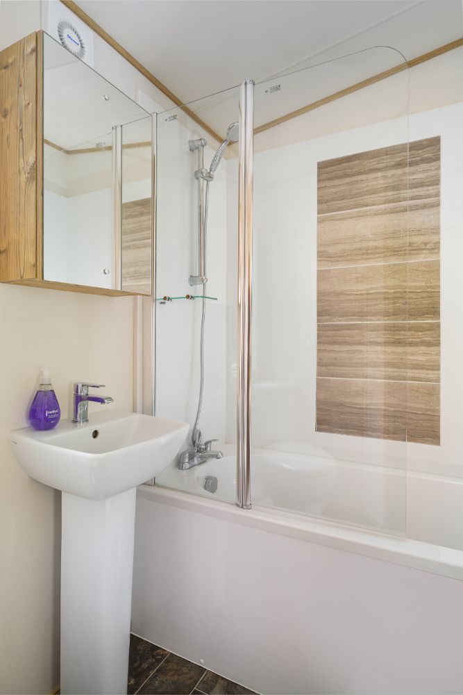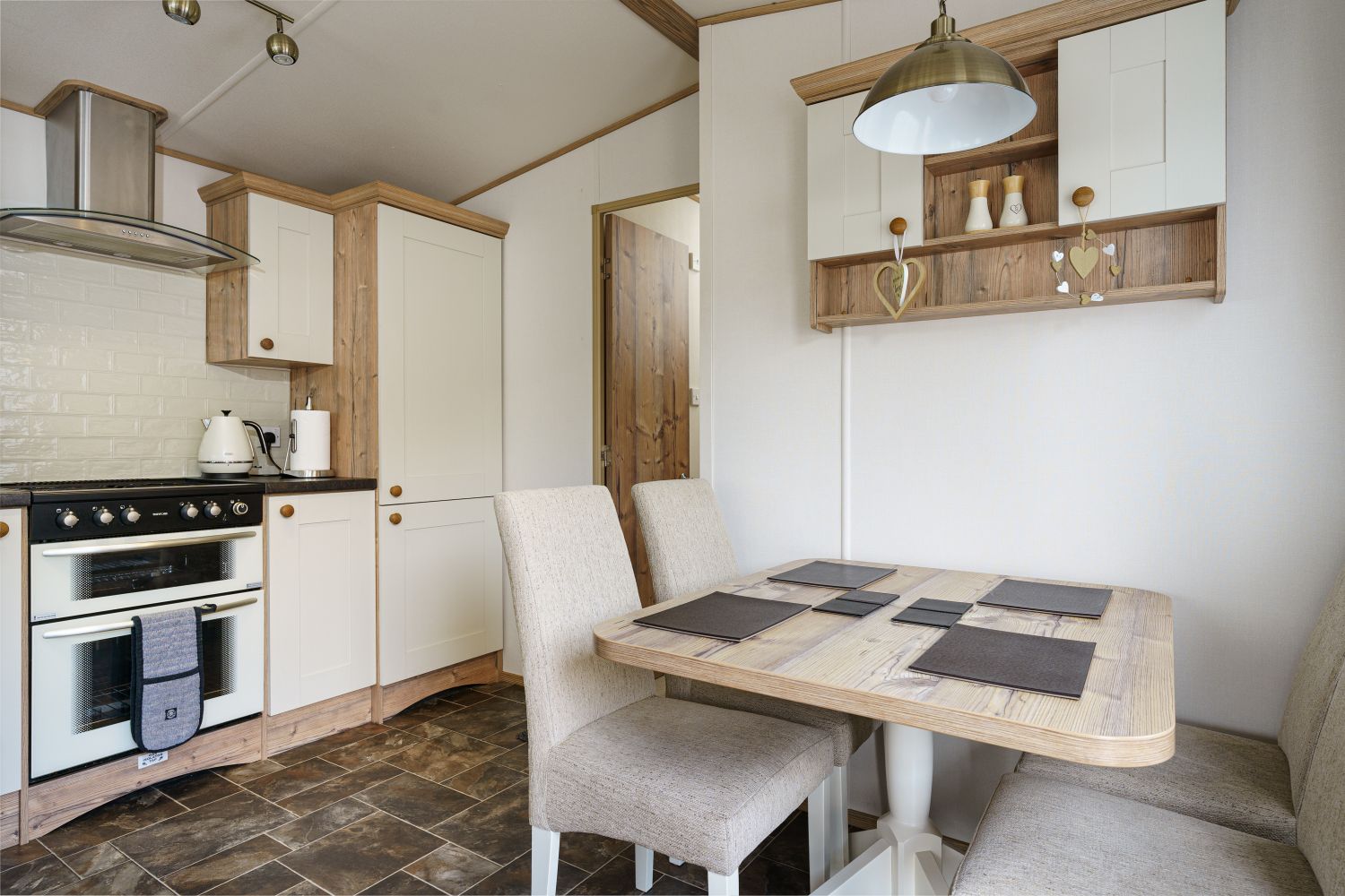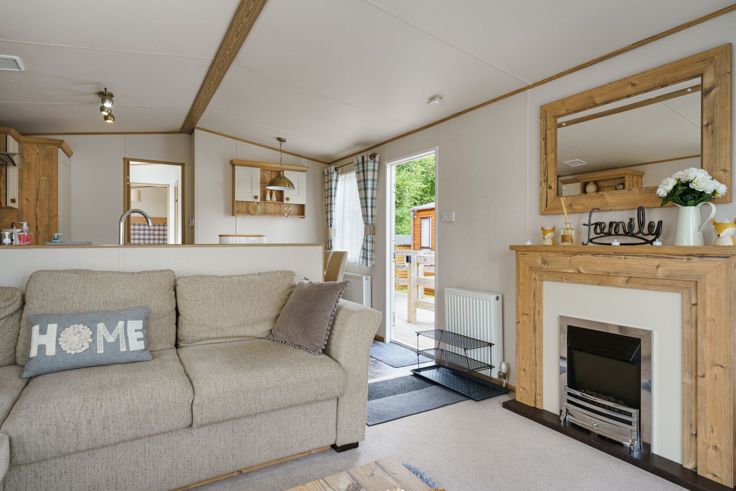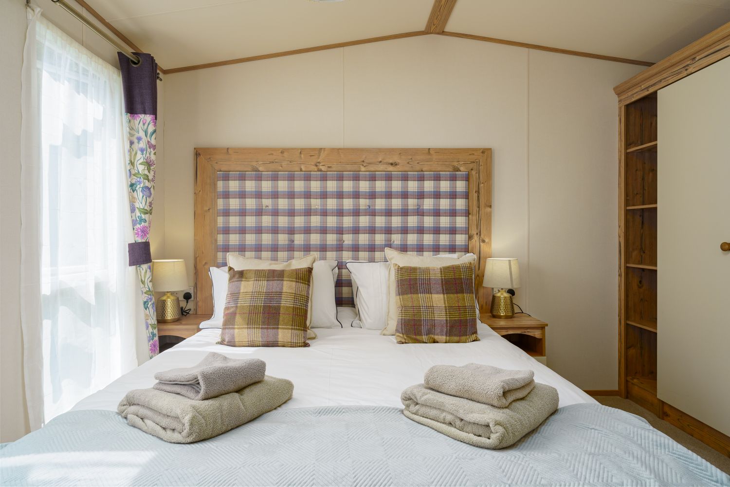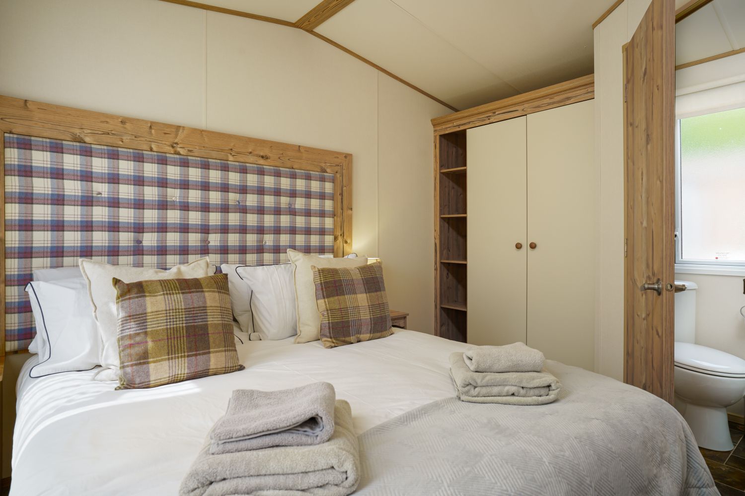 This 2 bedroom lodge is brand new in 2016 and is fully furnished with everything you will need for your self catering holiday in the heart of the Cairngorm National Park. The lodge sleeps up to 4 people. The main bedroom has a king size bed, en-suite WC and bath tub with a mains pressure power shower and a wardrobe for your convenience. There is an integrated dressing table with a large mirror. The second bedroom has twin single beds (which can be pushed together to make a second double room), more storage cupboards and mirror. The second bedroom has exclusive use of the family bathroom equipped with a mains pressure power shower and heated towel rail. The kitchen has an integrated microwave, dish washer and fridge freezer, and is fully equipped with kettle, toaster, crockery, cutlery, glassware, pots and pans, utensils and various other items. There is a gas cooker with four burners and oven and grill. The kitchen opens up to the open plan living area, where there is a 6 seater corner sofa and a real effect feature fire. The lounge is equipped with a flat screen HD TV, HD Freeview for those nights when you want to relax in front of the fire..