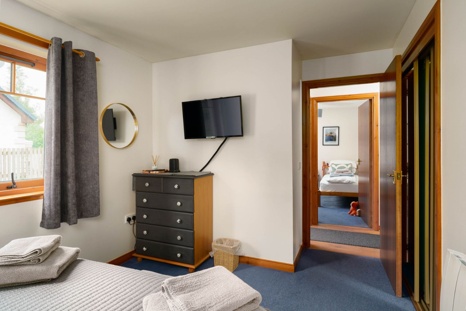 This 3 bedroom cottage was purchased by us in March of 2021, it has everything you will need for your self catering holiday in the heart of the Cairngorm National Park. On purchasing this previously run holiday let we have extensively renovated the property. The lodge sleeps up to 6 people. The main bedroom has a king size bed, TV, large wardrobe. The second bedroom has twin single beds, TV, mirror wardrobe. The third bedroom has a set of bunk beds, TV, mirror and a wardrobe. The kitchen has a microwave, dish washer and fridge freezer, and is fully equipped with kettle, toaster, crockery, cutlery, glassware, pots and pans, utensils and various other items. There is a oven and hob. We also provide a Nespresso Machine, please just bring your pods. The lounge/ dinning room as a very large 6 seater corner sofa and flat screen smart tv. Large dinning table with 6 dinning chairs. We have a small selection of family board games. We also provide internet.
